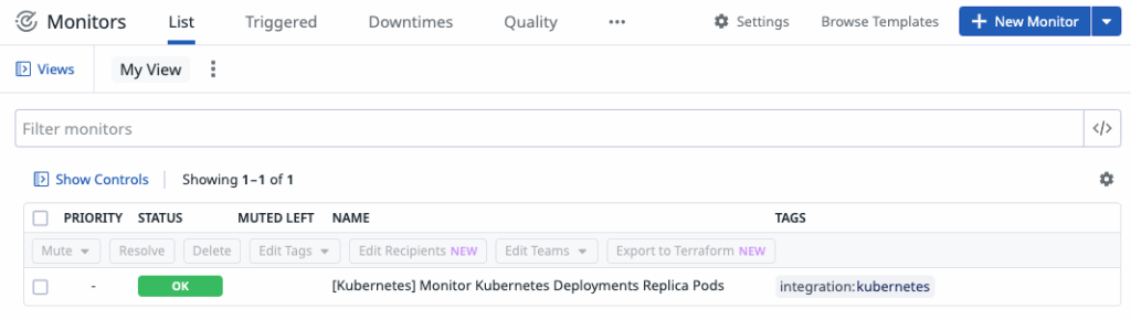 Navigate to the Monitors page and you can see your new monitor as a list: